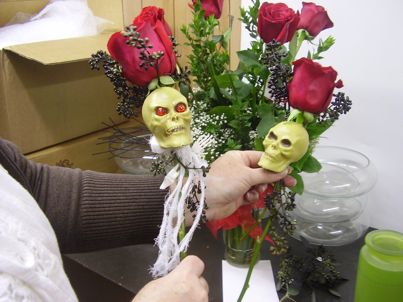 Such an opportunity came our way this week when I was contacted by the owner of Junkee Clothing Exchange in Reno about possibly doing the flowers for a Zombie theme wedding.